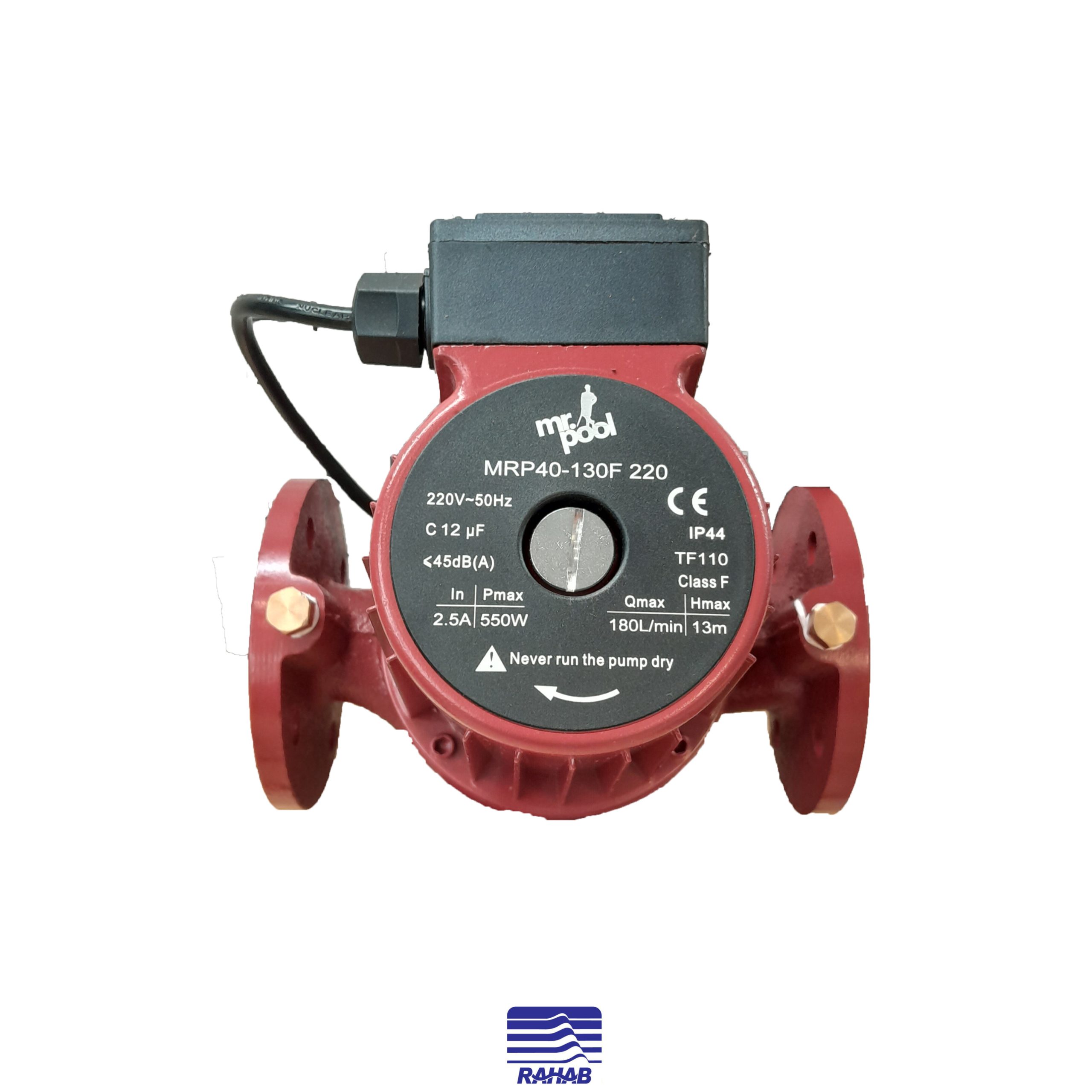 پمپ سیرکوله MR.POOL مدل MRP40-160F/250 دارای الکتروموتور تک فاز و تک دور بوده.هد آن 16 متر و دبی آبدهی آن 250 لیتر در دقیقه می باشد.