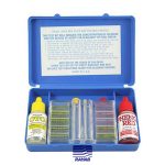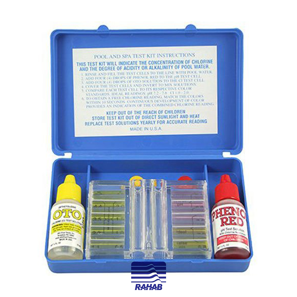 یکی از متداول تین روش های گندزدایی آب استخر، استفاده از کلر بوده که به روش های مختلفی از جمله کارزن های خطی یا شناور به آب اضافه میشود. اما میزان کلر موجود در آب یکی از پارامتر های حساس بوده که کمبود یا ازدیاد آن میتواند اثرات جانبی در آب استخر یا بر بدن شناگران داشته باشد. کیت تست میزان کلر و PH آب استخر میتواند میزان این پارامتر هار ا اندازه گیری نموده و شما را از کیفیت آب مطمئن سازد. کلر سنج ها در انواع دیجیتالی و شیمیایی در بازار موجود بوده که دقت هر کدام میتواند متفاوت باشد اما استفاده از این محصولات معمولا نتایج یکسانی را اعلام مینماید. نحوه عملکرد تستر کلر شیمیایی به این شکل است که با اضافه نمودن حجم خاصی محلول معرف کلر به نمونه مورد آزمایش بر اساس میزان تغییر رنگ و غلظت رنگ محلول بدست آمده سطح کلر آب تخمین زده می شود.