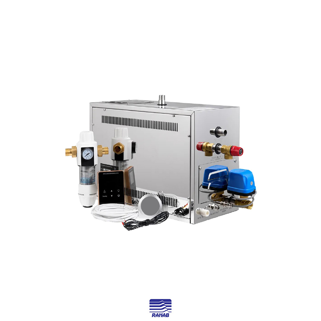 محفظه استیل ضد زنگ از جنس SUS304 و ضخامت 1.5 میلیمتر ،المنت حرارتی از جنس SUS321 ،بدنه SUS201 ، شیر اطمینان جهت جلوگیری از بالا رفتن فشار مخزن و ترکیدن آن ،شیر برقی و فلوسوئیچ جهت جلوگیری از آسیب دستگاه در هنگام قطعی اب ،فیلتر آب ورودی جهت حدف ذرات و رسوبات اسیب رسان به دستگاه پمپ تخلیه خودکار ،هشدار ولتاژ غیر طبیعی و حفاظت از دستگاه در مقابل ولتاژ فوق العاده بالا،مجهز بودن به سیستم عیب یاب خودکار ،نازل پخش بخار با قابلیت پخش محلول آرامبخش ،کنترل روشنایی اتاق سونا بخار،ورودی مجزا محلول رسوب زدا جهت انجام سرویس های دوره ای تنها برخی از مشخصه های بارزه این ژنراتور ها میباشند.